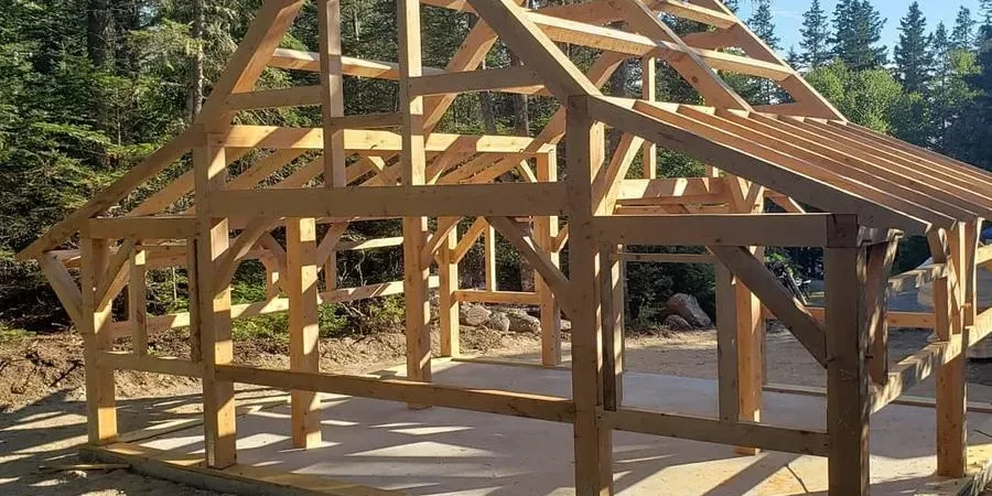 This coastal woodshop is our 20’ x 20’ broken back frame with an added shed. This barn is ideal for a small cottage on the coast or cabin in the woods or even a workshop! The main space of the barn is sized at 14’ x 20’ and the sheds are both 6’ x 20’ for an overall footprint of 26’ x 20’.